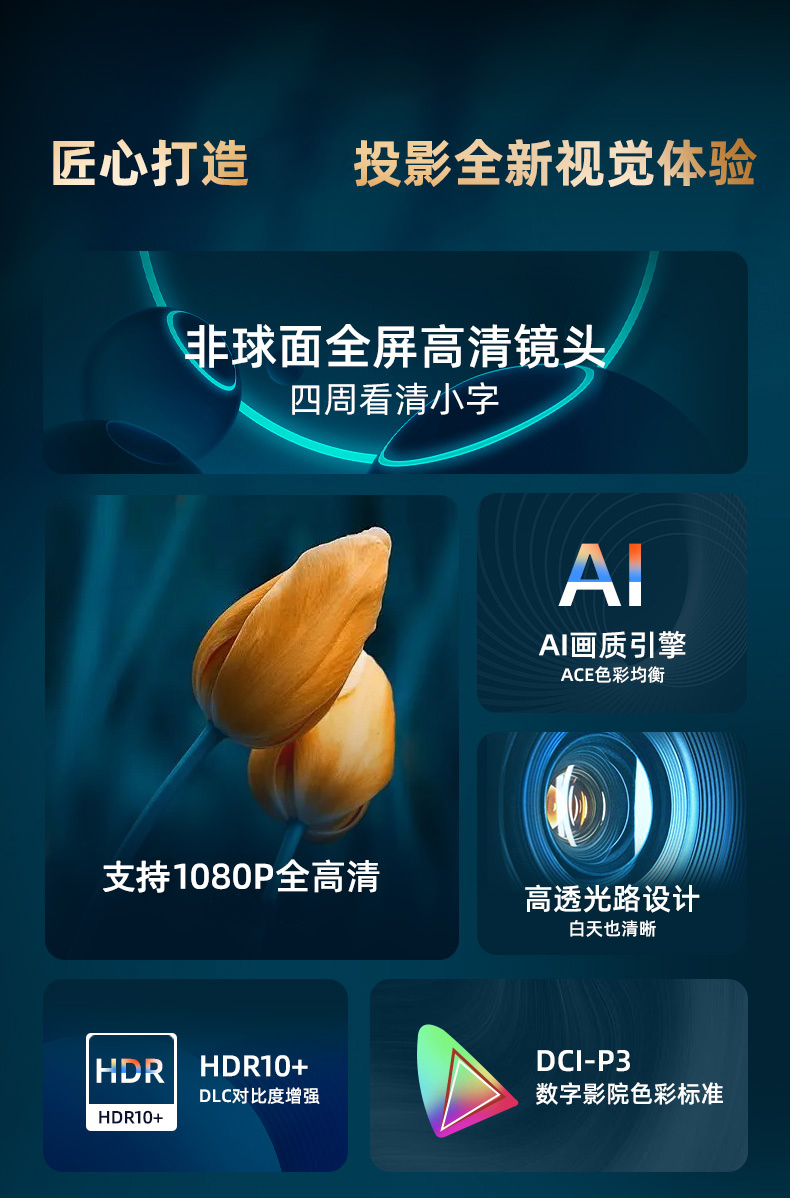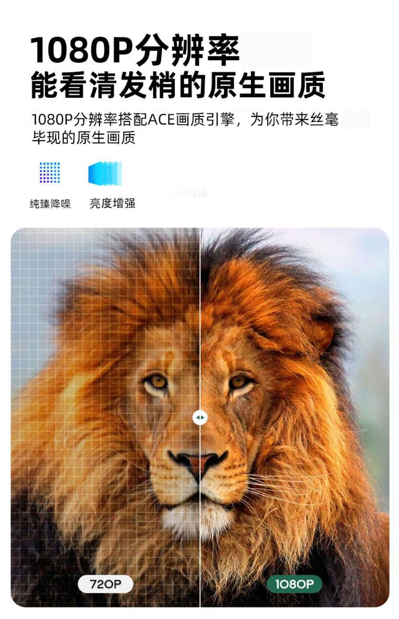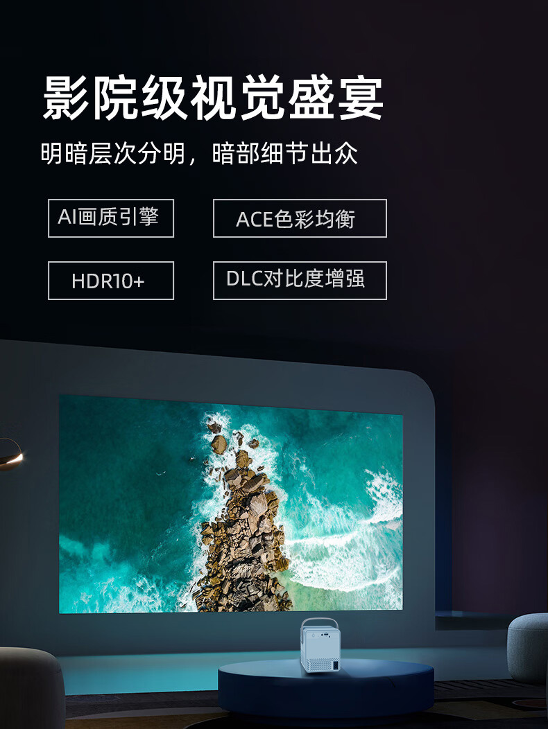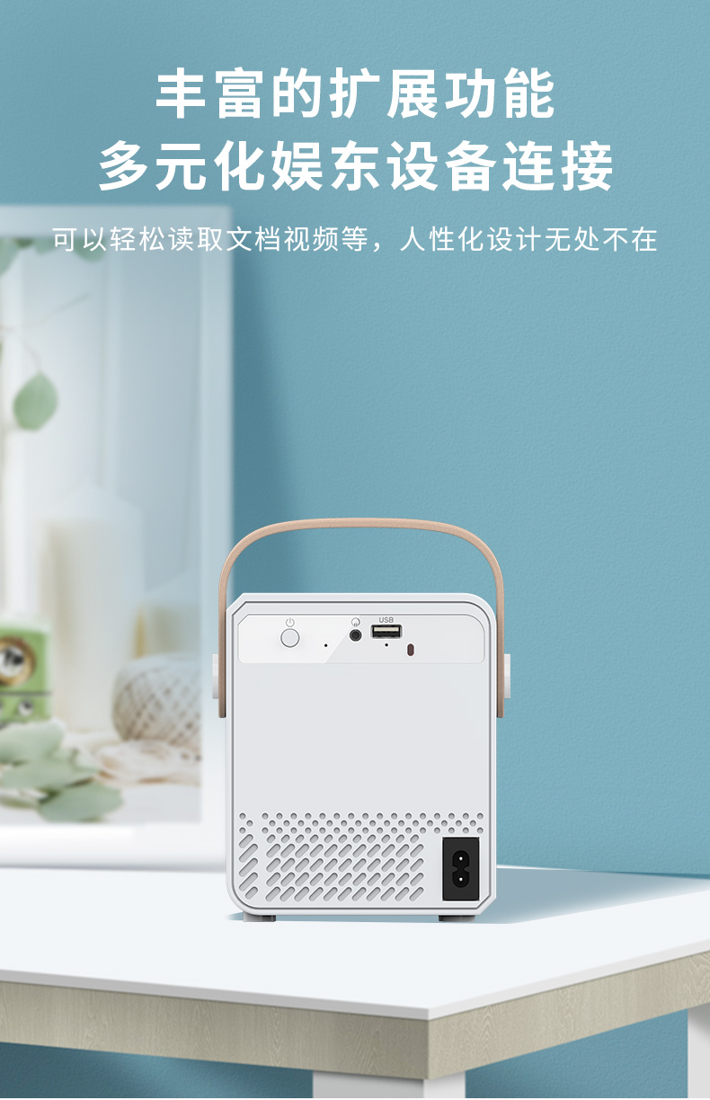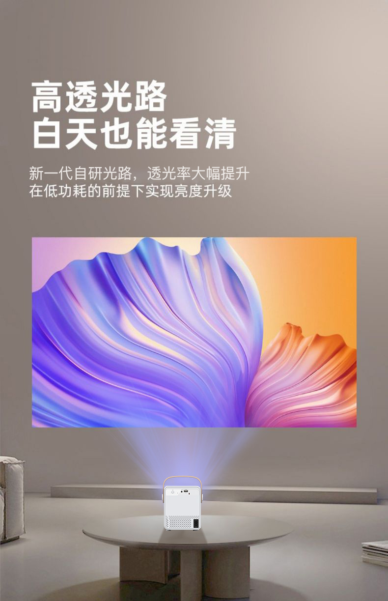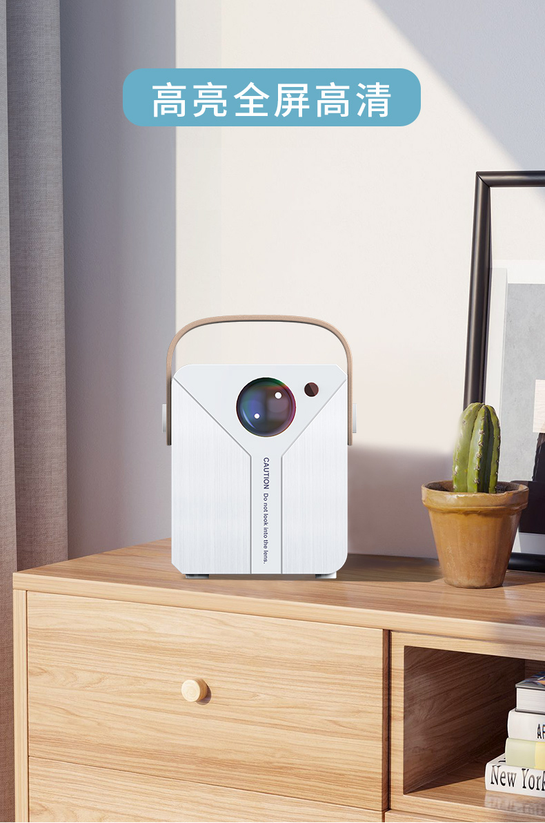 Ai智能语音控制系统,老人孩子都可操作;支持侧投四点梯形矫正,随心摆放更灵活;支持苹果安卓手机同屏/投屏,内置安卓系统海量影片可在线观看;便携设计,携带无负担,支持1080高清播放,内置独立音箱,可多种设备链接,手机/平板/u盘/移动硬盘/网络盒子等,漫反射原理呵护眼睛健康。