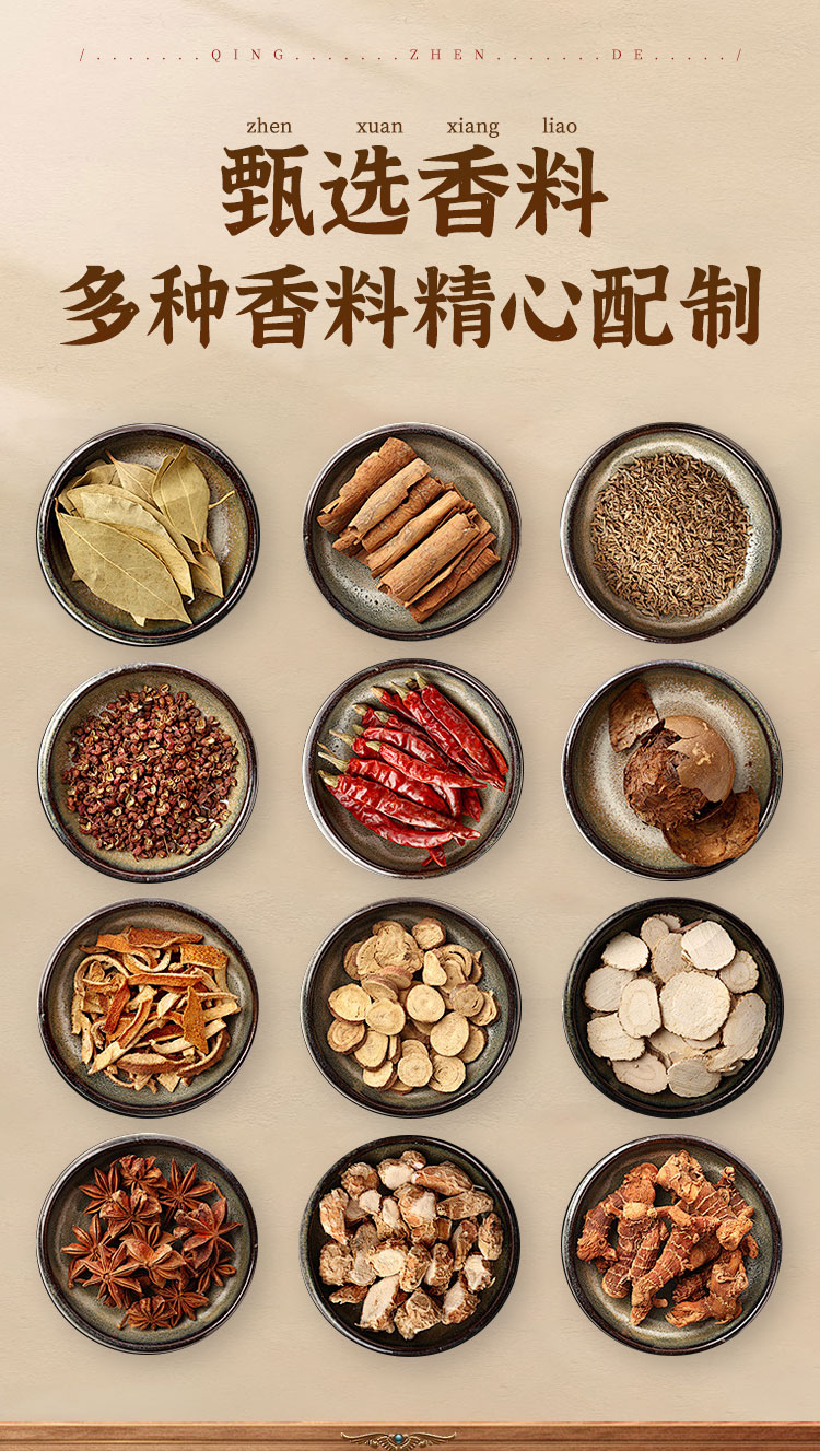 产品规格:1910g 产品配置: 椒麻鸡500g五香童子鸡500g 卤鸭腿240g 五香酱羊肝260g 麻辣卤鸭翅210g 四喜丸子400g 香辣带鱼300g 豆皮肉卷300g