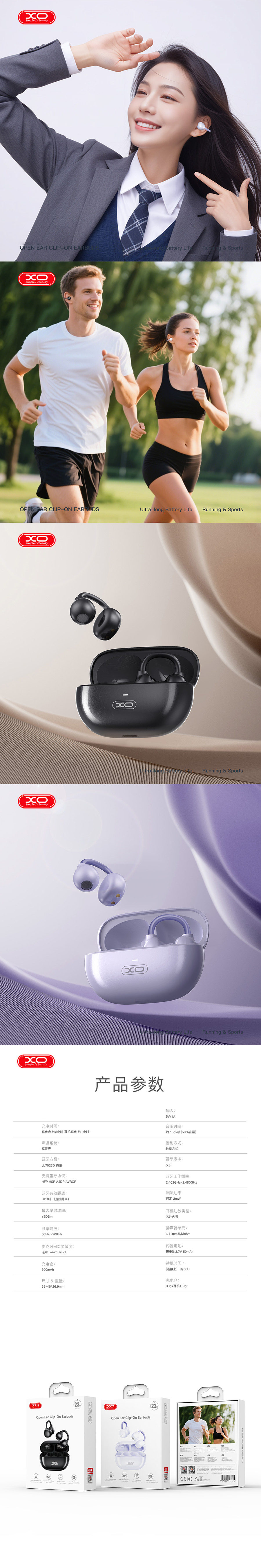 XO 珠光耳夹OWS耳机