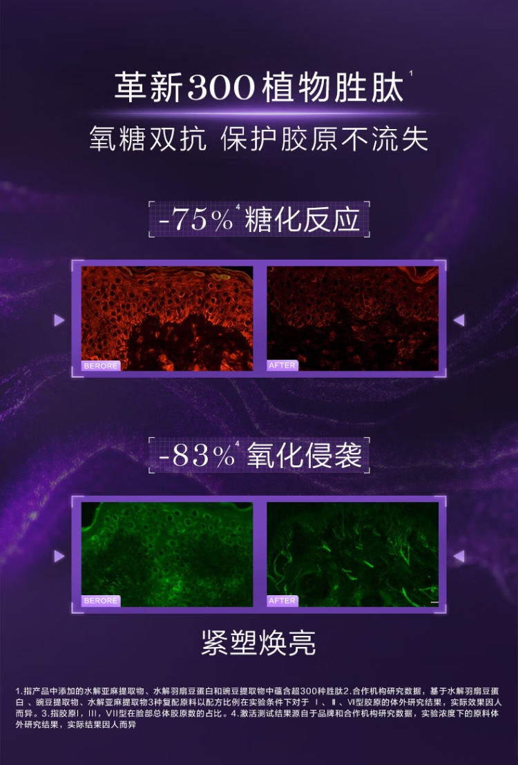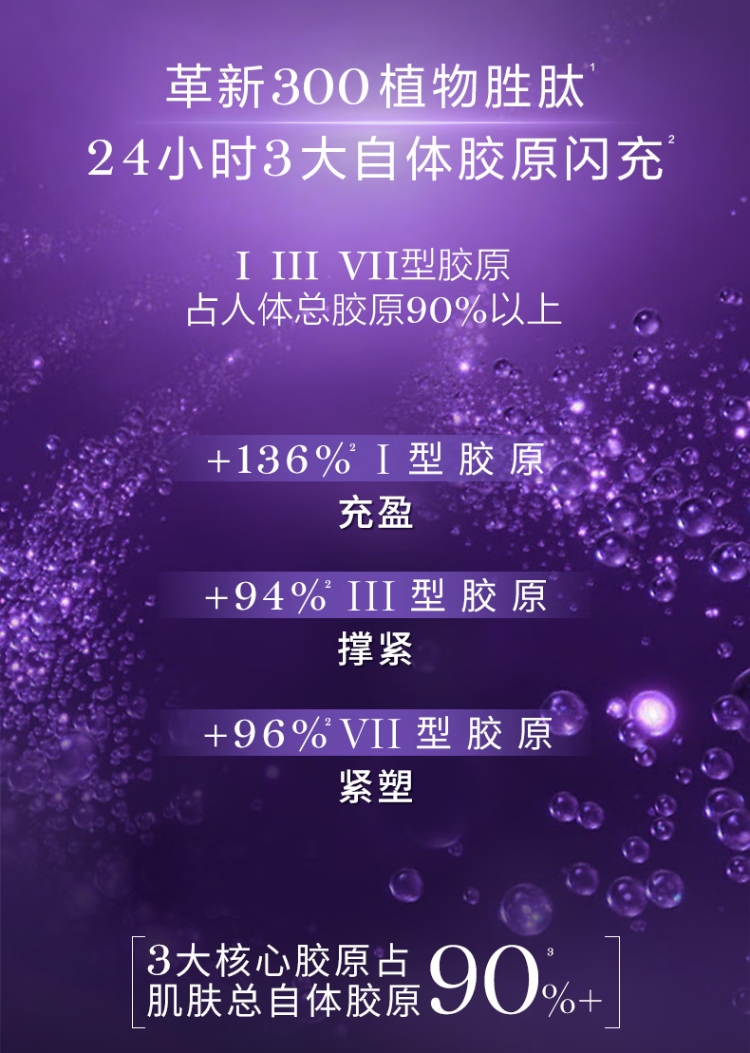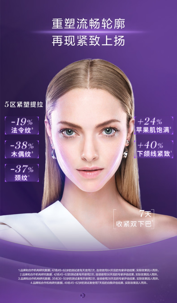 滋养肌肤减少眼下皱纹、细纹、鱼尾纹和眼袋浮肿,减少肌肤疲劳迹象,眼周肌肤看起来更光滑紧致。