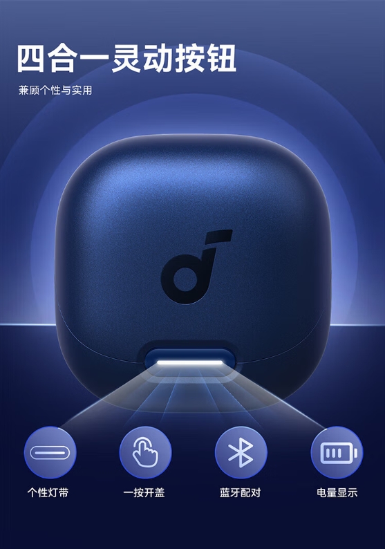 防水等级:IPX4 佩戴方式:入耳式 振膜类型:单动圈 充电接口:Type-C、USB 产品颜色:深海蓝、深潜黑、水母白
