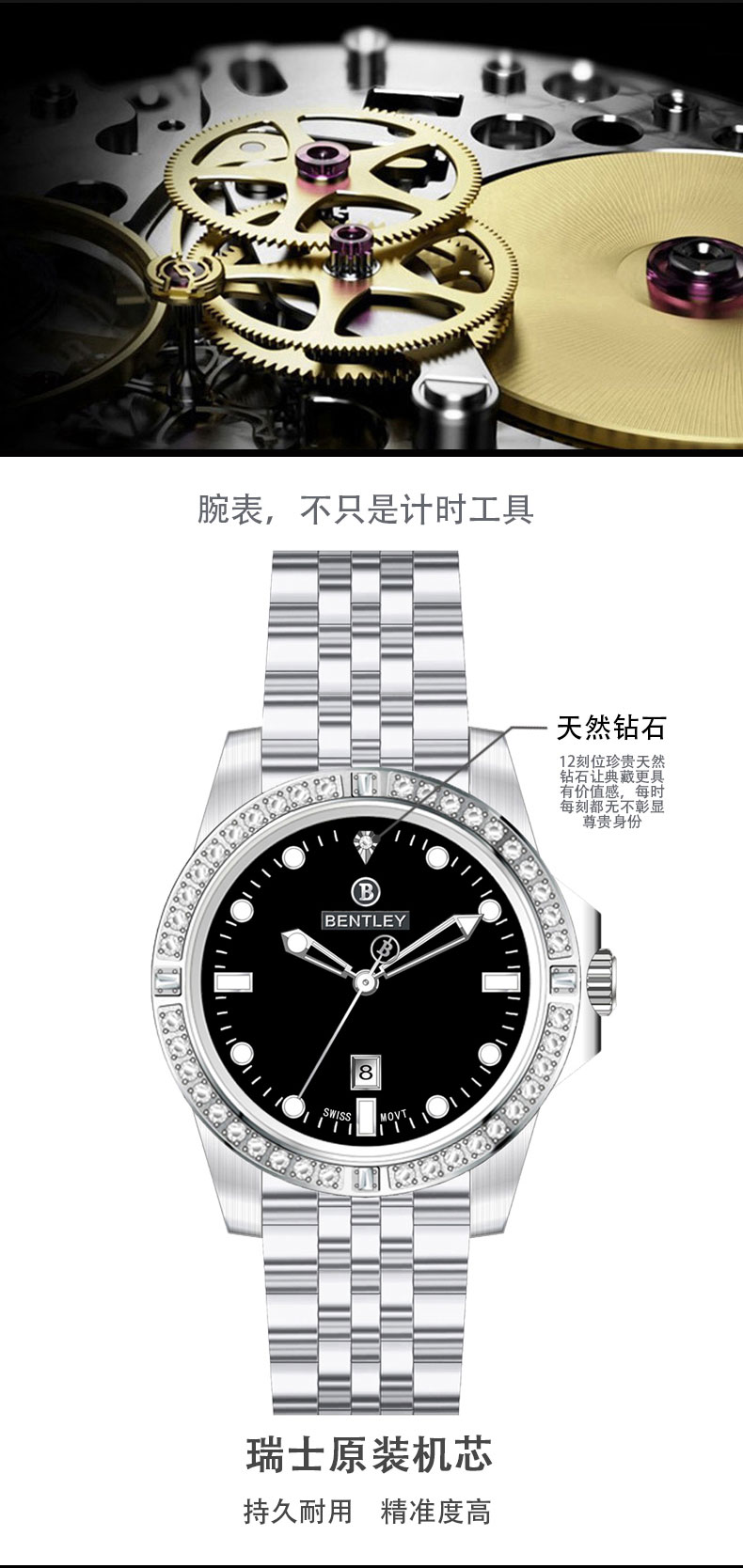 产品介绍: BENTLEY成立于瑞士纳沙泰尔的拉绍德封1948年,这古老城市以钟表之城为人所知,是瑞士钟表的起源,更彙集全世界最优秀的钟表品牌。