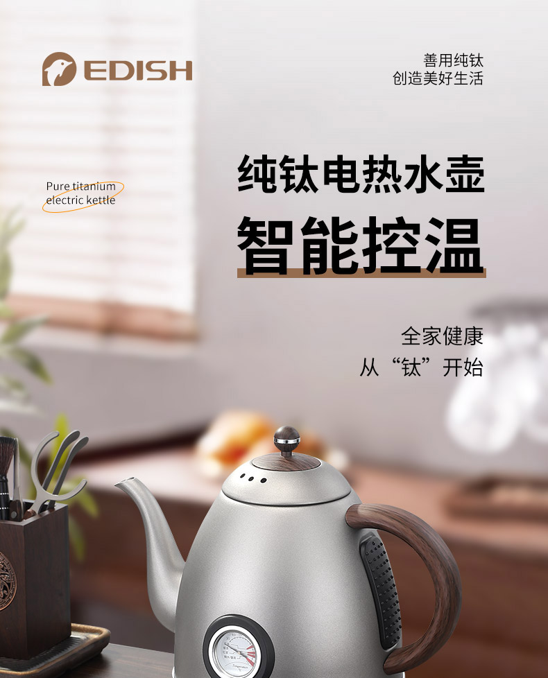 EDISH壹滴水纯钛智能控温电热水壶