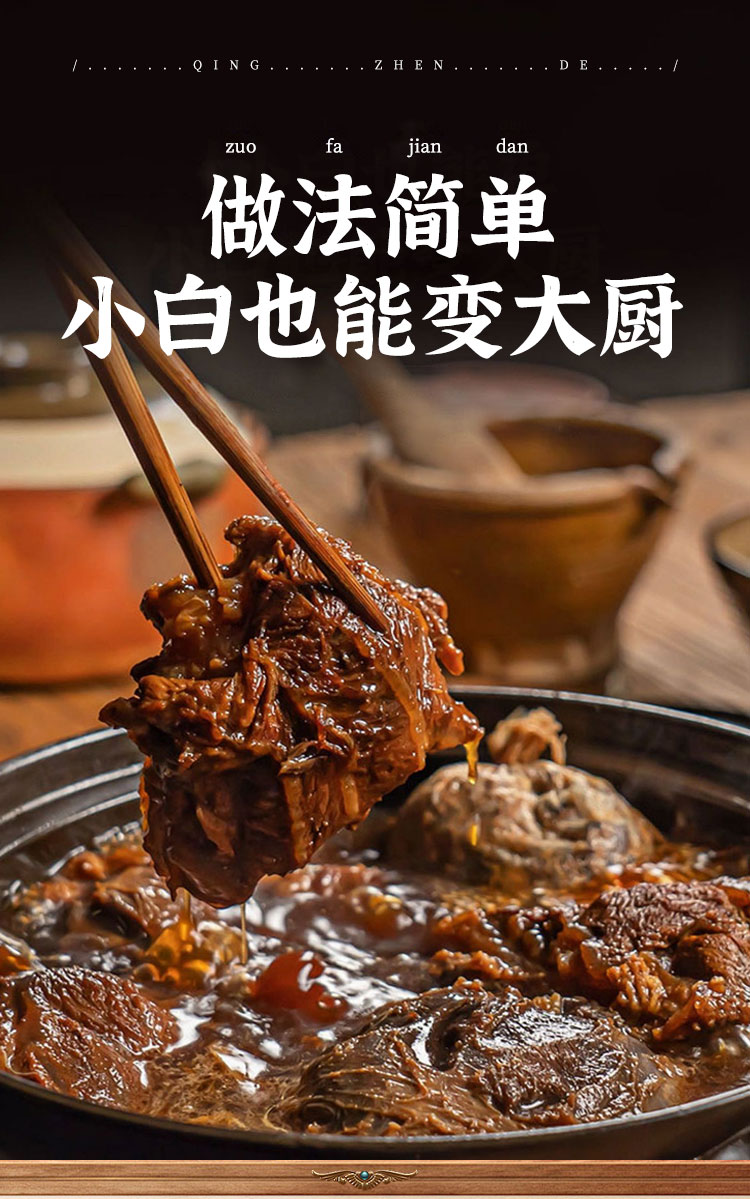 传统卤煮工艺传承京味经典,地道香料滚揉低温腌制,卤香入肌入理,每一口都是美好回味,鲜香浓郁,肉质紧实,百搭的美味牛肉给您足够动力。