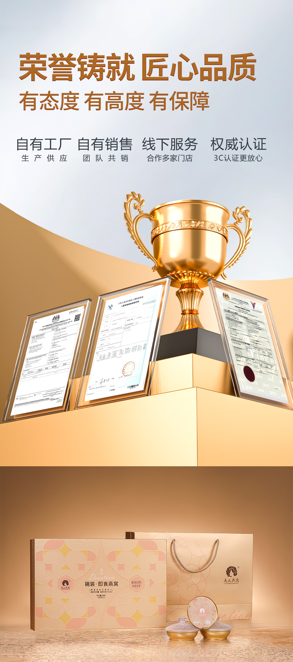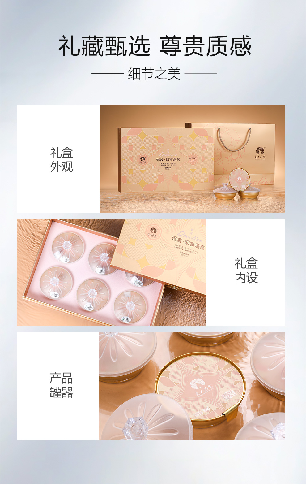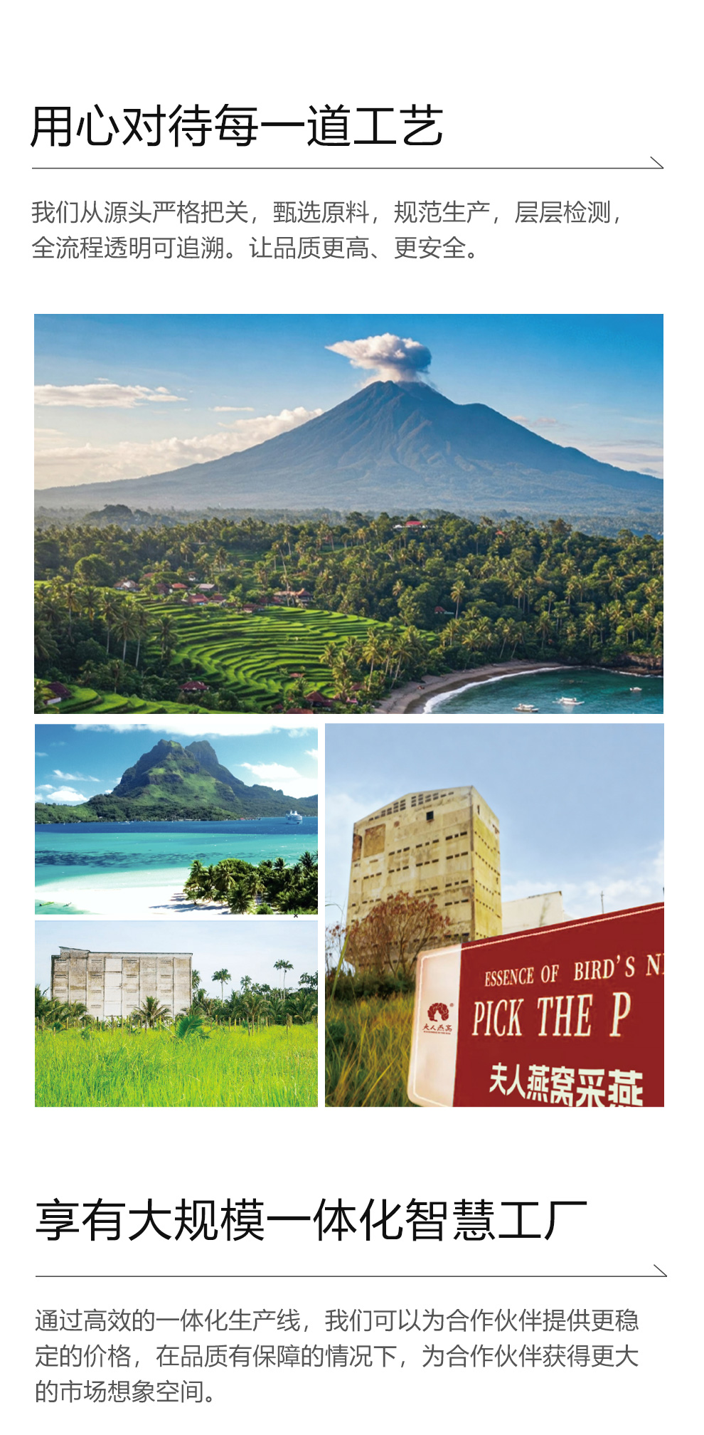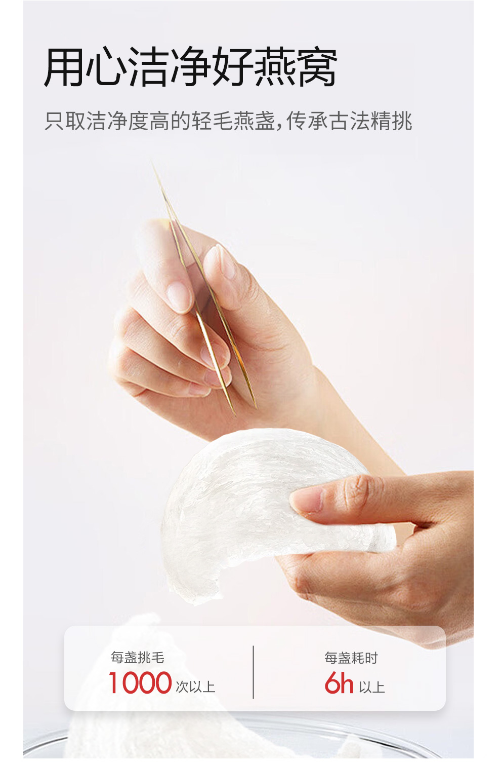 原料精选印尼马来雨季燕盏,纯手工挑毛处理,8重过滤纯净水,医药十万级生产车间,5项国家专利,一碗燕窝,点亮温暖生活。
